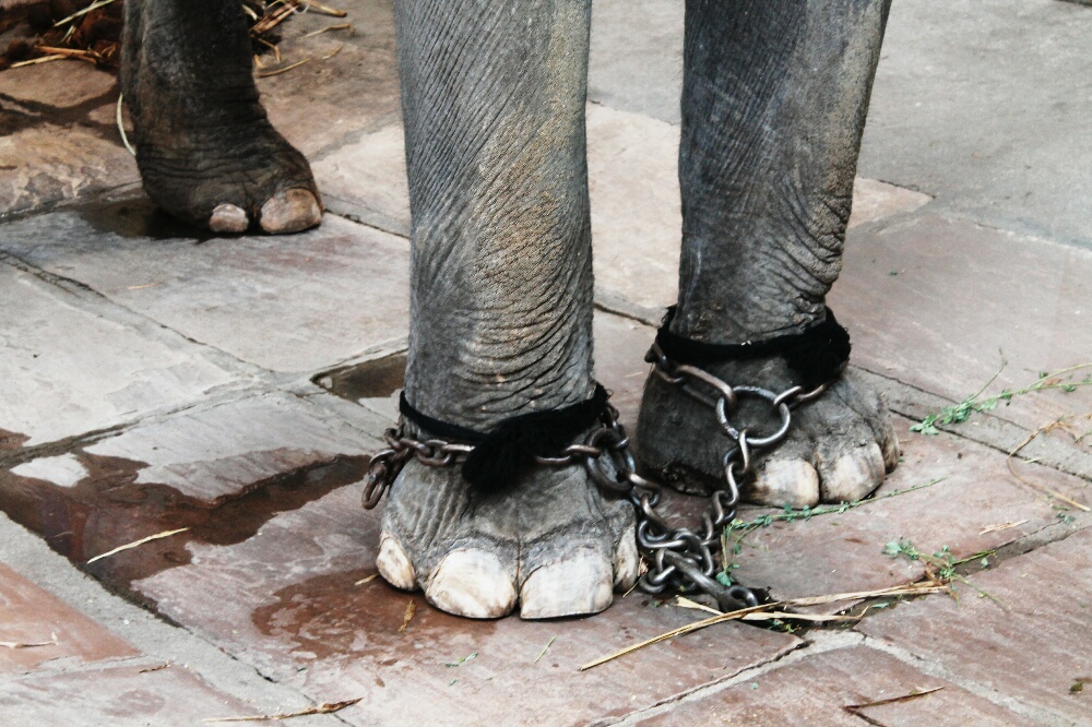 Later that day we went on an elephant safari. In our heads this sounded romantic. In reality it was hard to experience and endure. The elephants were chained up in a tiny space. We felt like we should go along with it, we didn’t want to offend anyone, but as soon as we were on the elephant we both immediately felt awful, as the driver was stabbing the elephant in the head to control its movements.