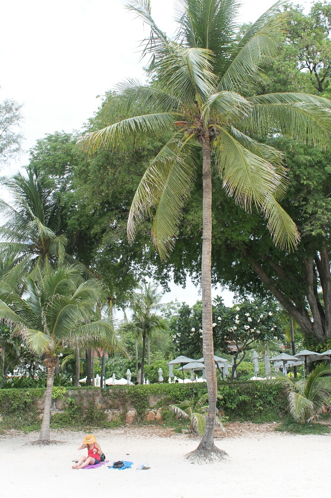 We headed to the beach that morning. We found a lovely spot under a coconut tree, but not right under it…those things can and do fall. Hua Hin is on the Gulf of Thailand. The beach is okay and the water is like bath water. So nice and refreshing. It was nice just to relax and save some pennies.