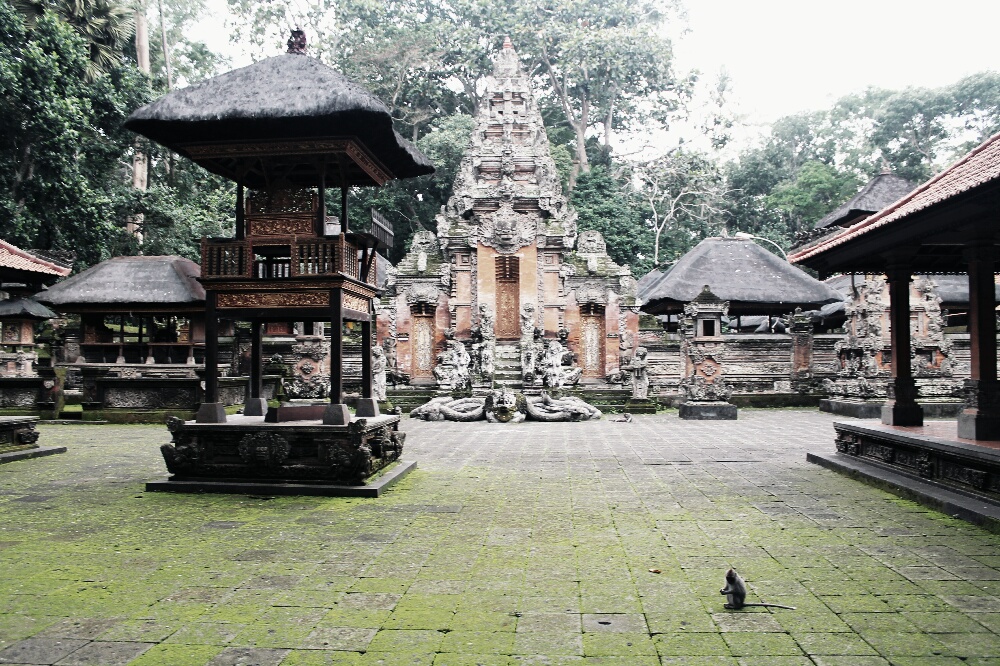 Day one we hit up the Monkey Forest. Our trip has seen us mingle with many monkeys but the Monkey Forest definitely had the most. Essentially it’s a big park you can stroll around with monkeys everywhere. There were many breeds to see- not that I can really name any… other than old man monkey, sad monkey, baby monkey and of course angry monkey. Angry monkey took a shine to Katie trying to pull her skirt down and instead of helping her out I decided to catch it on camera.