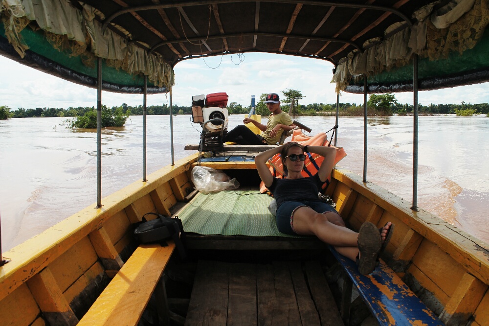 Another tough bus journey, but thankful we had our own seats from Phnom Penh to Kratie. We realised how we can just get on with things and how our expectations are about right when it comes to bus journeys in Cambodia. As we set off on part two of our bus journey to Kratie, one girl got off the bus as it was to claustrophobic, which actually worked out well for us because she was on our row of seats. Another girl who was quite posh from England was complaining that the conditions were ‘unacceptable’ haha sorry no stretched limos here love.